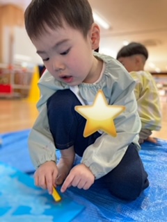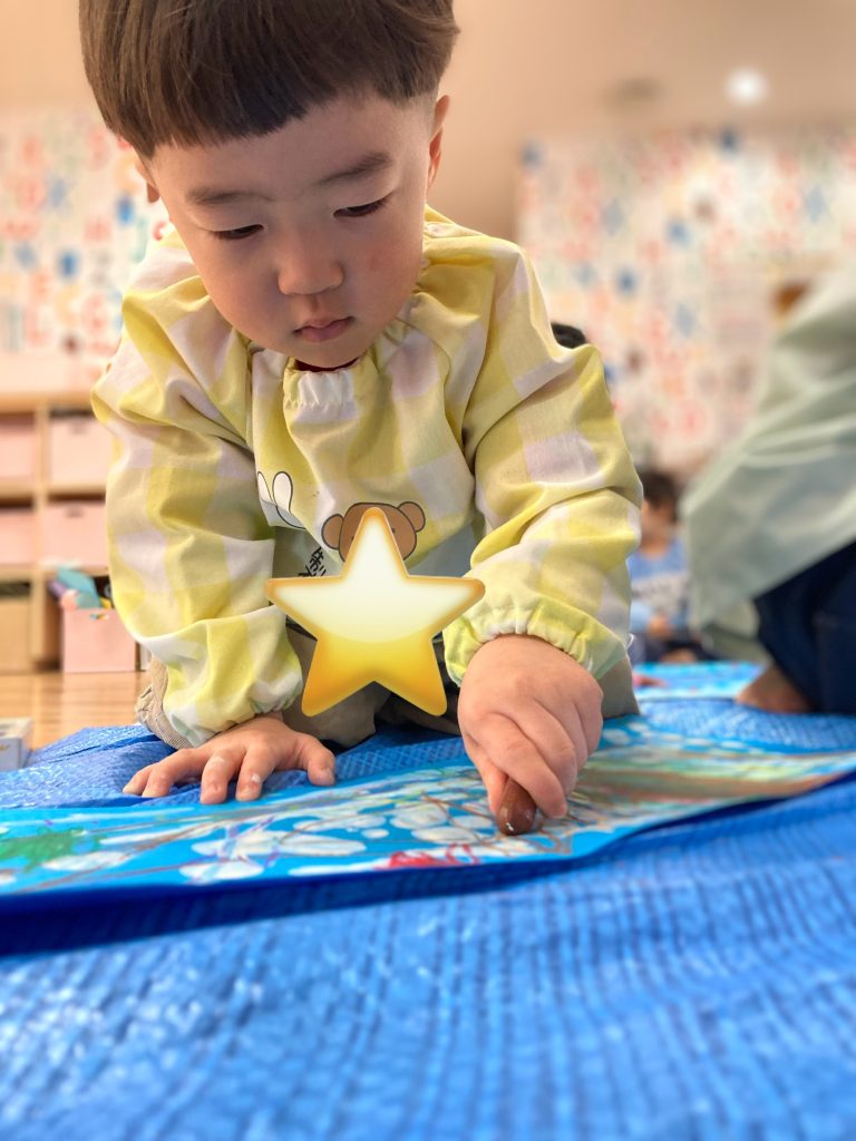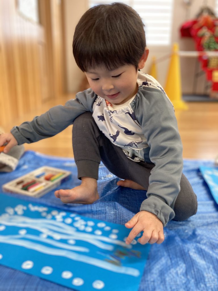 その後は春を思い浮かべながら色を選び、冬から春に移り変わる様子を表現して楽しんだ子どもたちです。