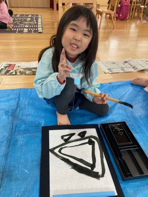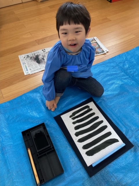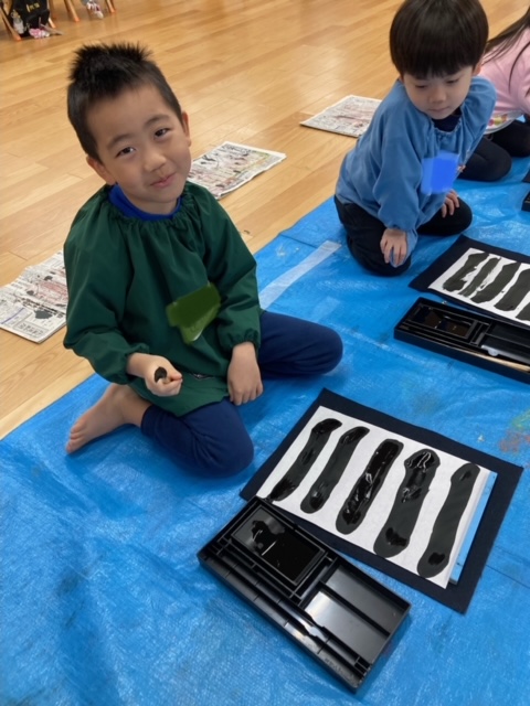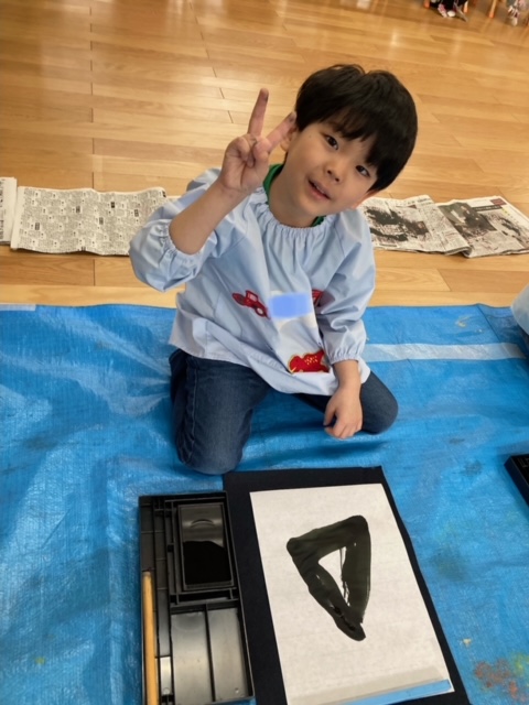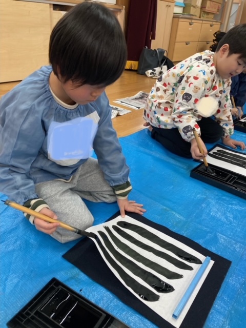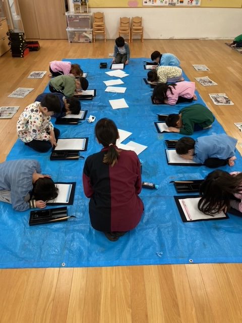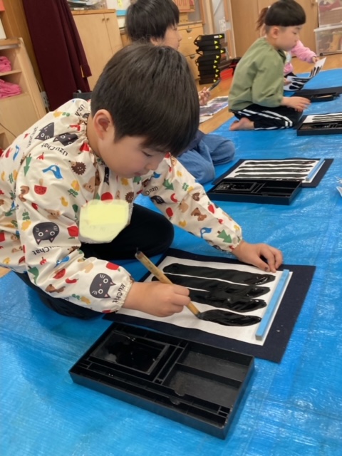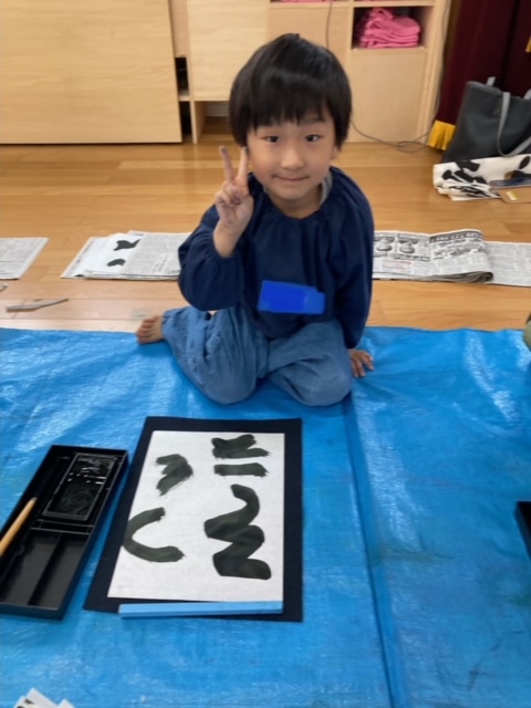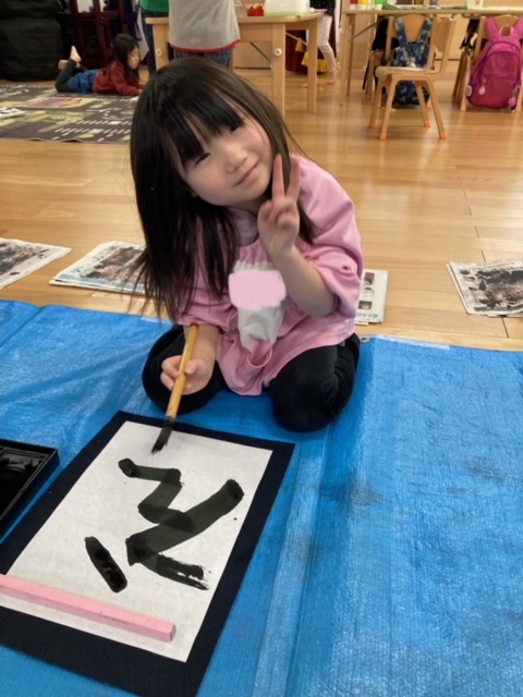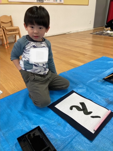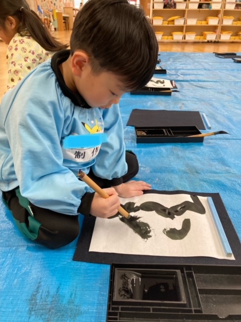 筆を使って文字を小さく書くのは難しいと思いますが、年長さんのみんなは真剣に取り組み、とても上手に書く事が出来ました。