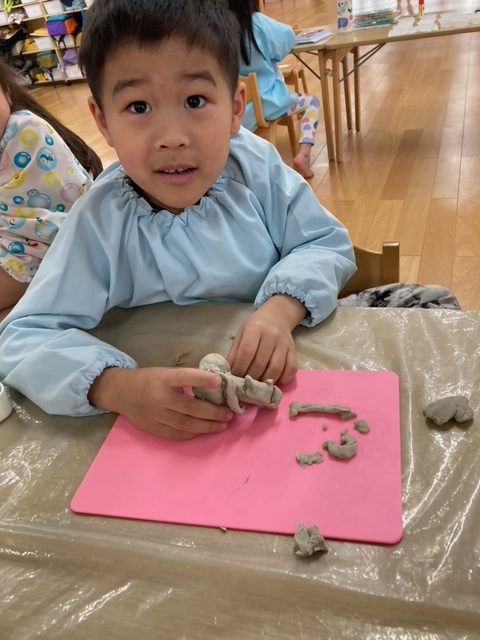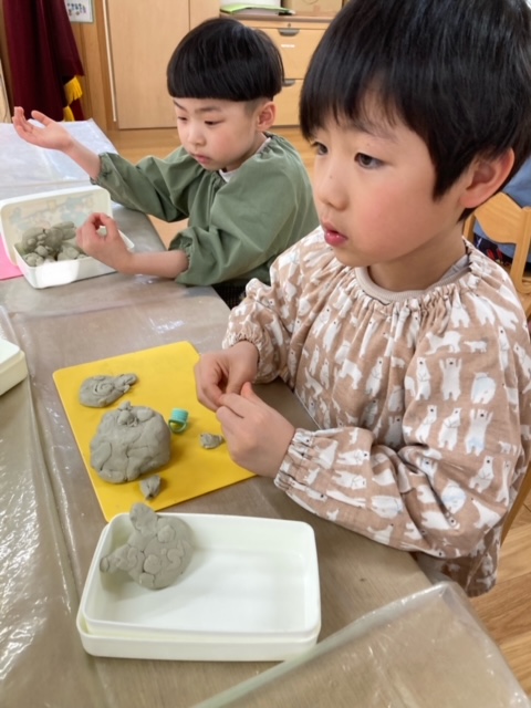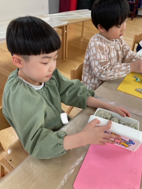 2025年03月03日(月) 3月3日 さくら組 午前中はひな祭り会があったので、午後の様子をお伝えします。午後は久しぶりに【粘土】をしました。のんびり粘土を楽しむ子どもたち。いつも忙しく過ごしていたので、とても嬉しそうにお友だちと会話をしながら遊んでいました。