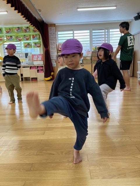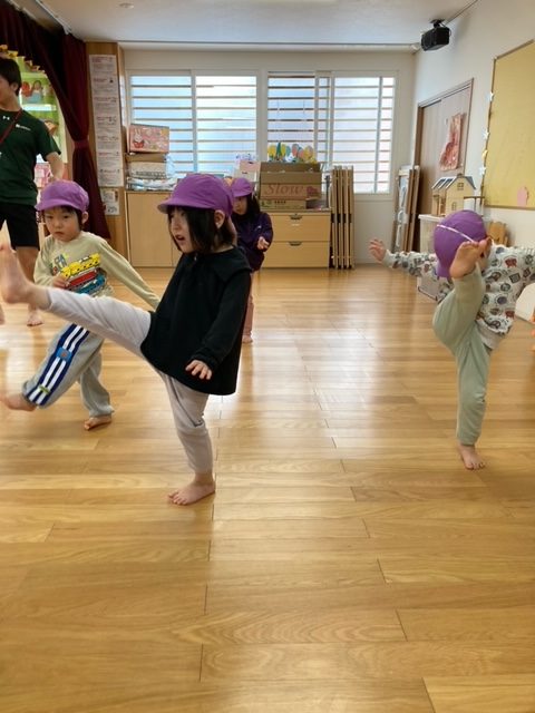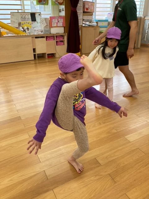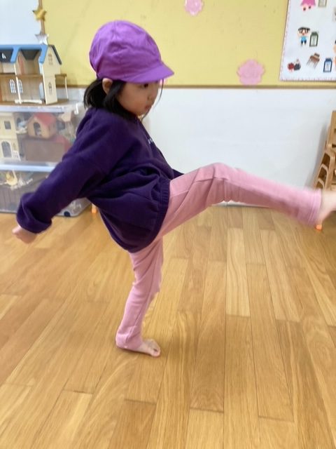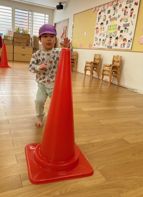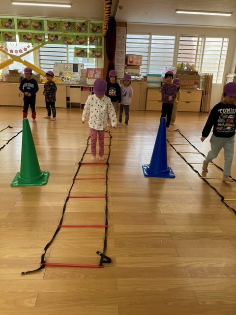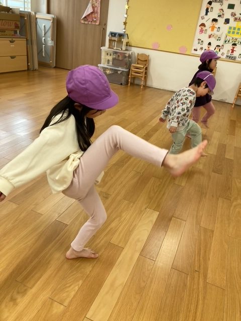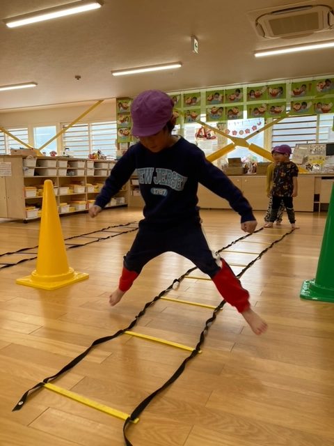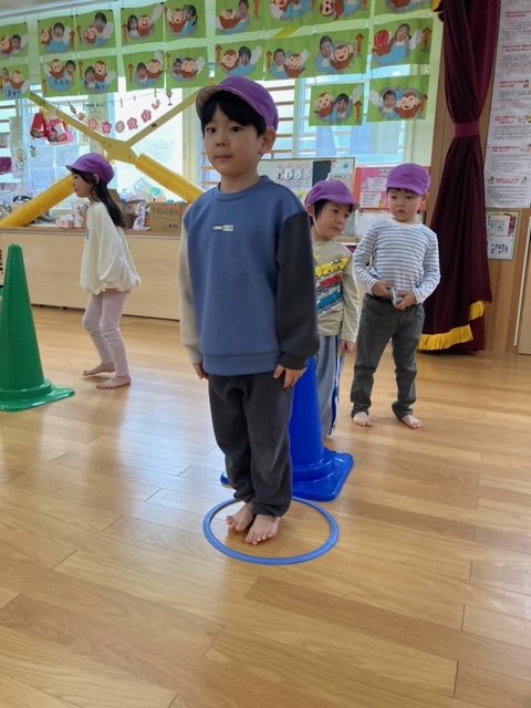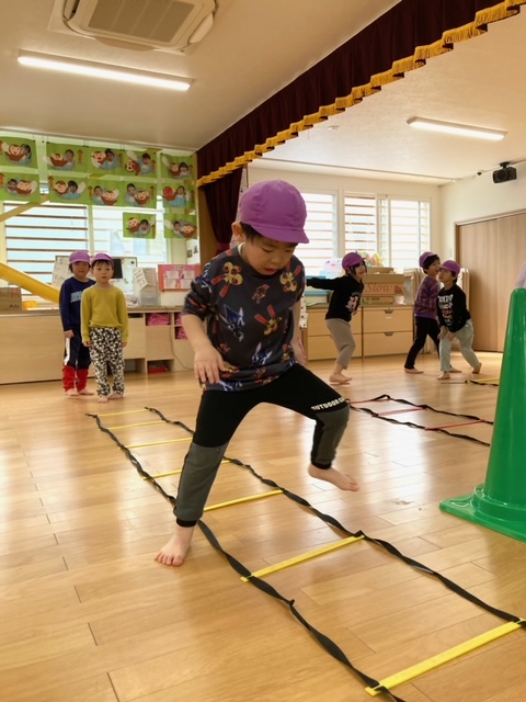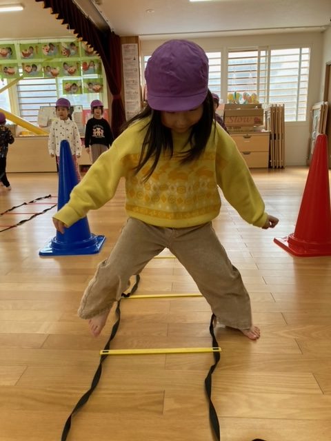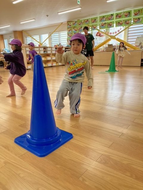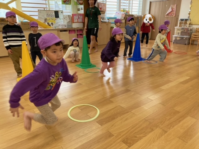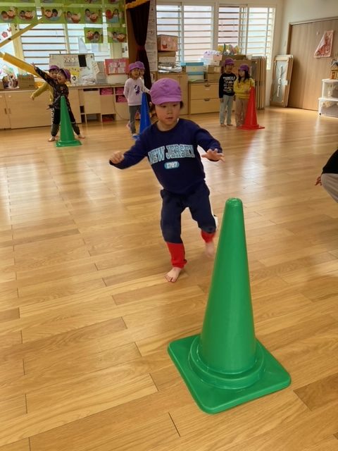 腕が固まったまま走るお友だちが多数見られたので、走りながら腕を引く事が課題です。