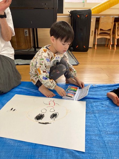2025年03月06日(木) 3月6日 うめ組 今日は造形表現がありました。たくさんの保護者の皆様にご参加いただきましてありがとうございました。 うめ組のお友達の顔を描く予定でしたが、近くに大好きなお父さんお母さんがいて予定を変更し、ご両親のお顔を書くお子様が多かったです
