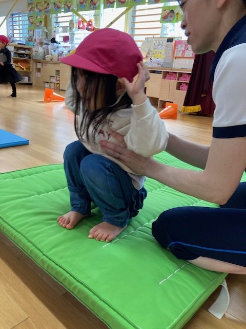 マット運動の”後転”では手のひらを広げて回る事が難しかったり、鉄棒の”つばめ”からの”前周り”は勇気がいる場面もありましたが、チャレンジする姿がすてきなうめ組さんでした。