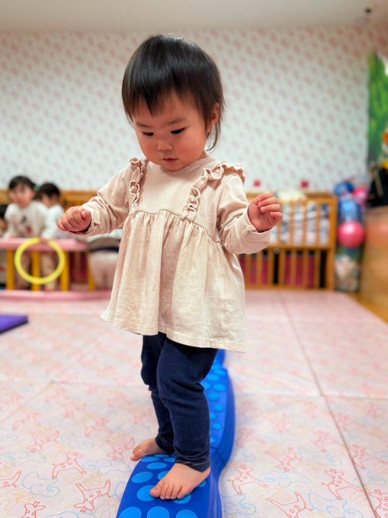 坂になっているマットの上でバランスをとったり