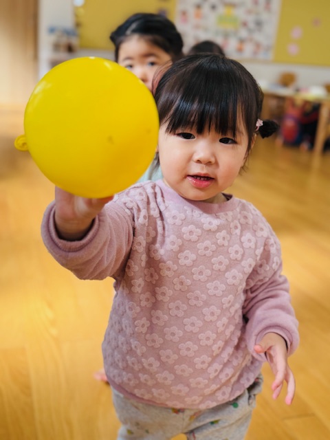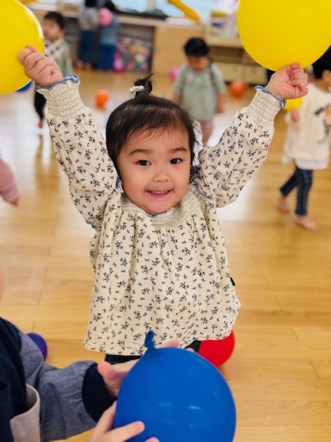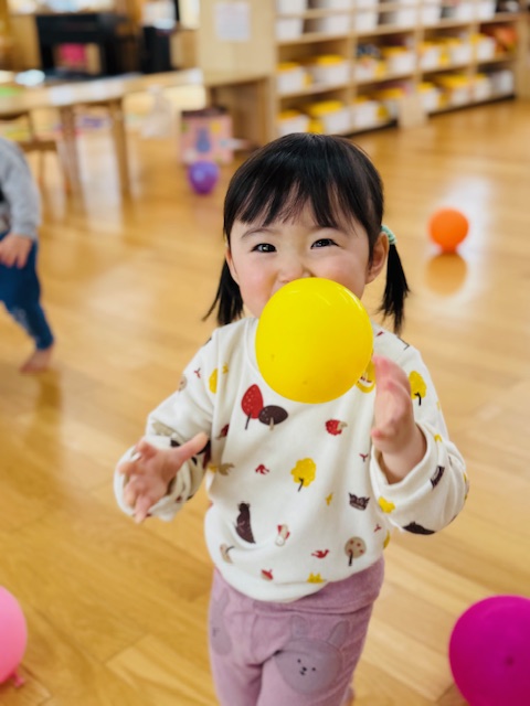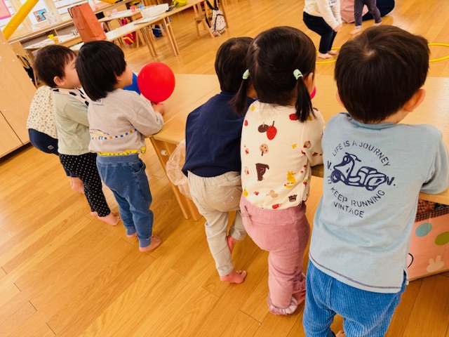 さくら組さんのお部屋で風船あそびをしましたよ。