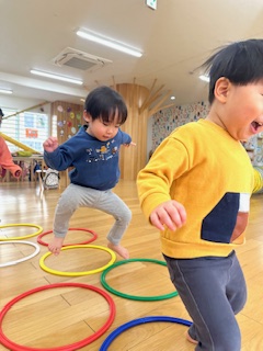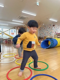 “フープコーナー”では、両足跳びが上手に出来る子が多くいました。