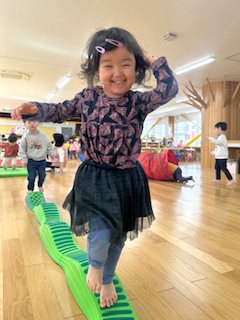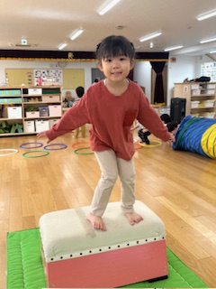 “跳び箱”ではかっこいいポーズや可愛いポーズを考えてジャンプする姿や、”ウィープレイコーナー”では下に落ちないように渡れる子が増えました。