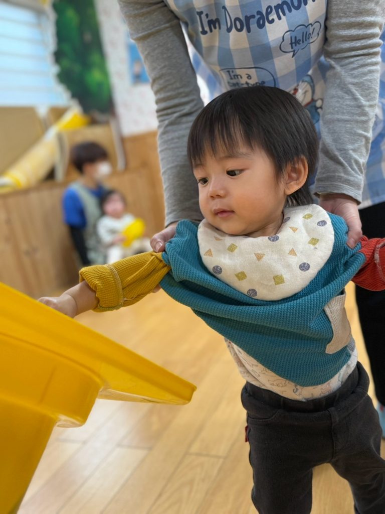 最後はサーキット遊びでポールの下をくぐり、台に登ってぬいぐるみにタッチ。