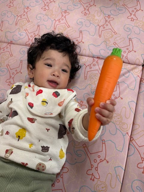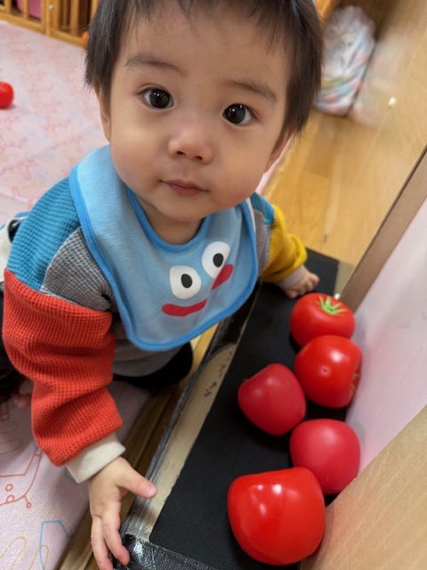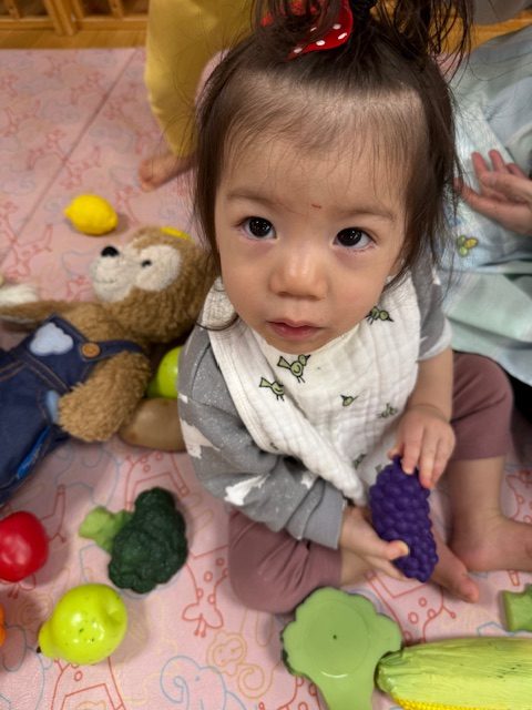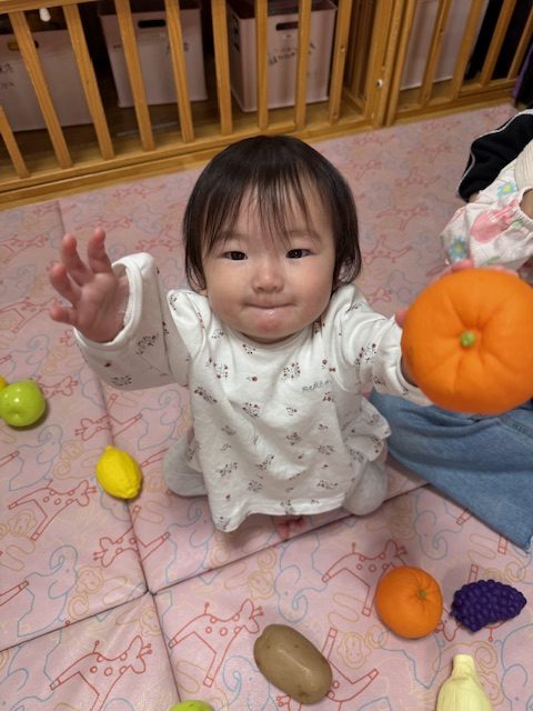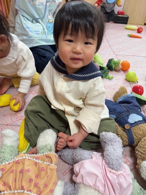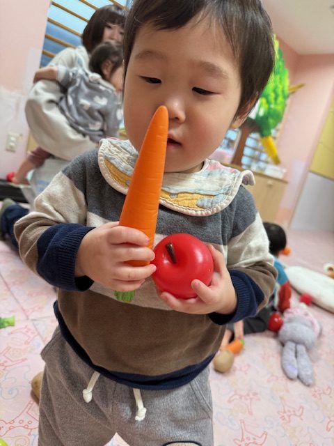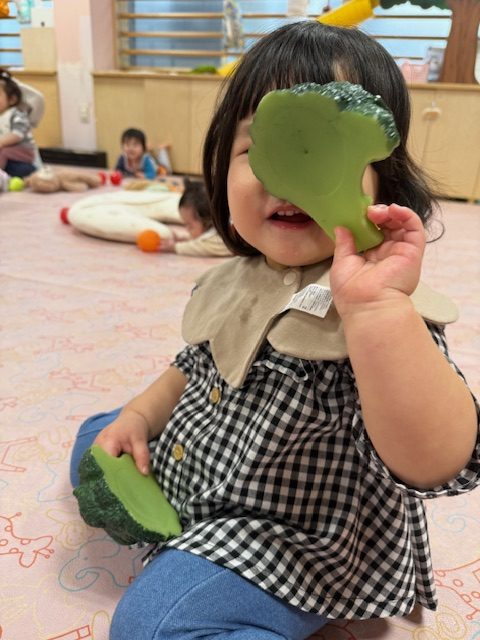 たくさんの野菜を見て、「ブロッコリー」「にんじん」と答えられるお友達もいてびっくりしました。