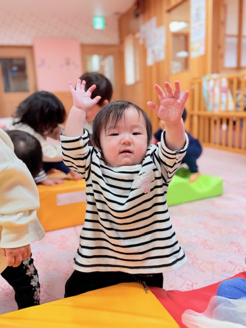 そのあとはいちご組さんと一緒に運動遊びをしてたくさん身体を動かしました。