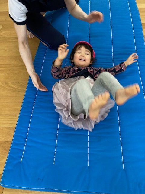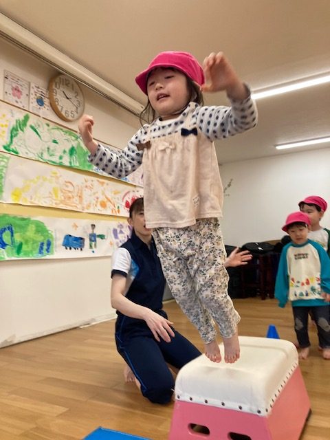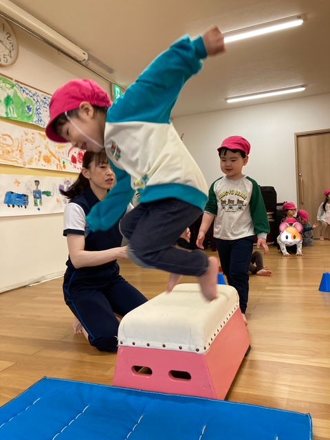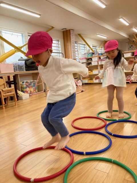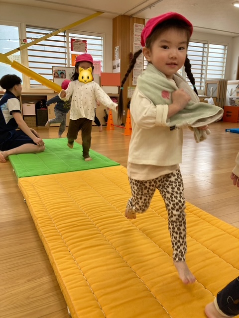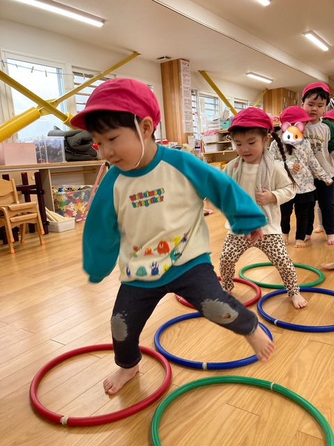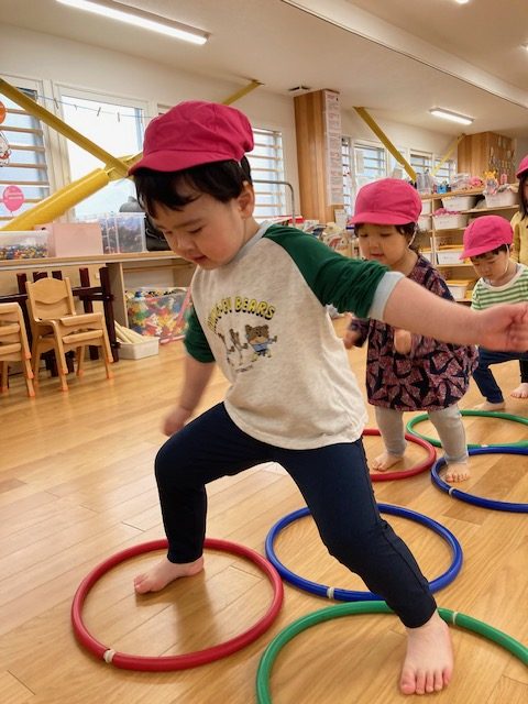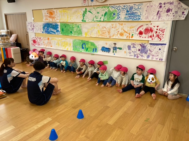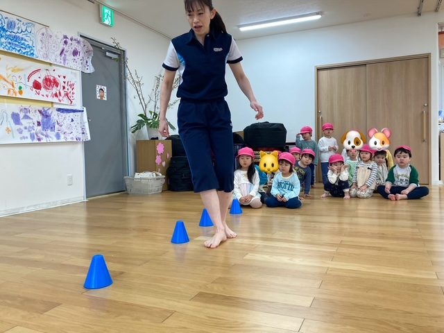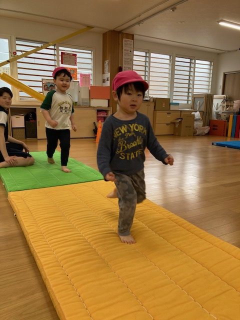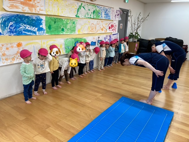 初めての体育はとても楽しく、30分間集中して取り組んだ子どもたちです。