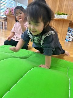 お友達と一緒に遊ぶことが増えた子どもたち。一緒にマットの上で『ごろごろ〜!』と言いながら転がって楽しむ様子がみられましたよ。