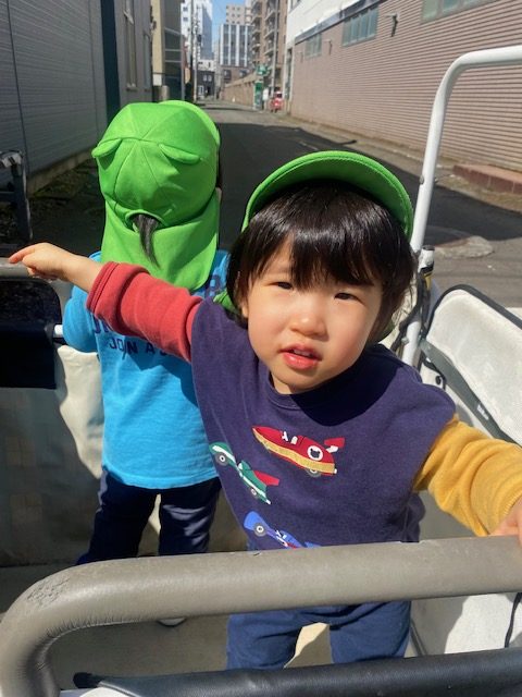 園では泣いていたお友達も、外の空気に触れると、「わぁ!」と大喜び。