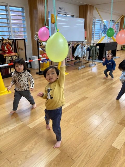 室内でもたくさん身体を動かして、元気いっぱい遊ぶ子どもたち。
