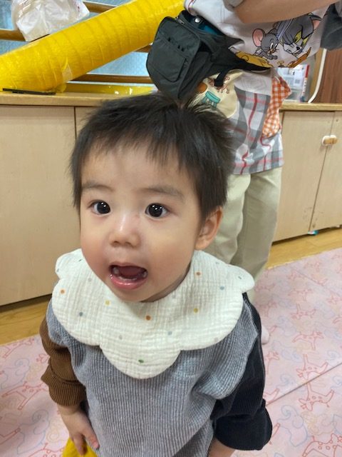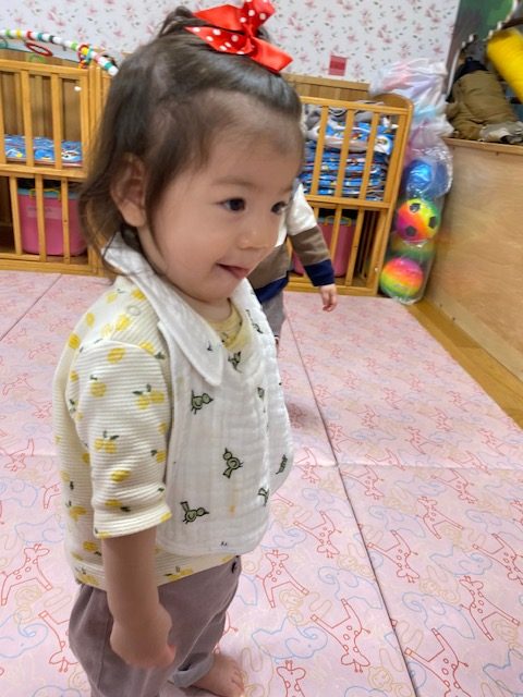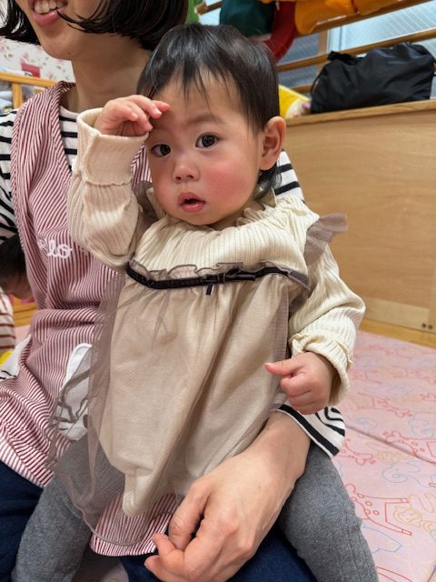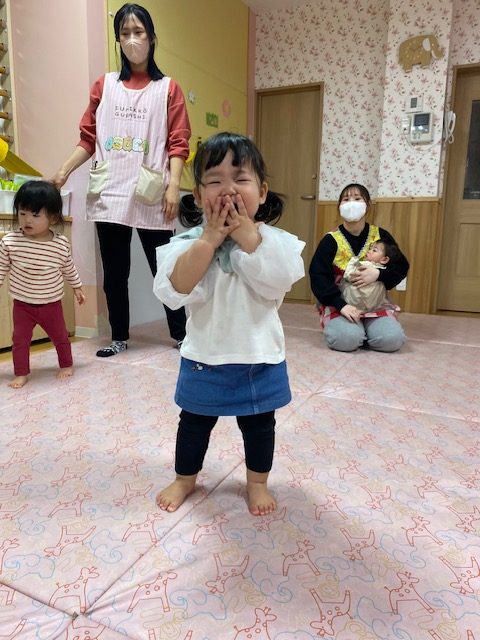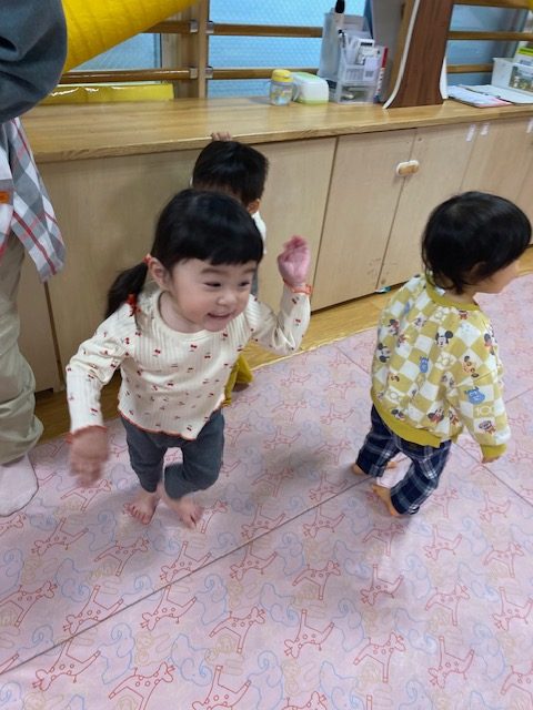 2025年04月21日(月) 4月21日 さくらんぼ組・いちご組 今日は体操と運動遊びをしました。体操では、いつもみんなが踊っている「カラダンダン体操」「ピカピカブー」をはじめ、いろんな体操を踊りました。 その後は運動遊びをしてたくさん身体を動かしました。