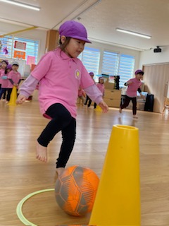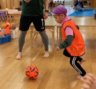 自分のチームのゴールにボールを蹴り入れるハプニングもありましたが、一つひとつルールを確認しながら覚えているところです。