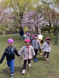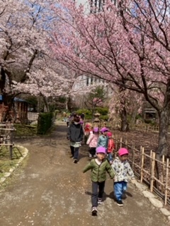 今日も桜がきれいに咲いていて、みんなで公園の中を散策してきました。