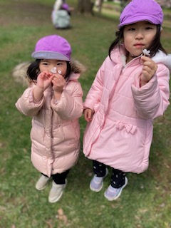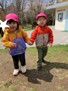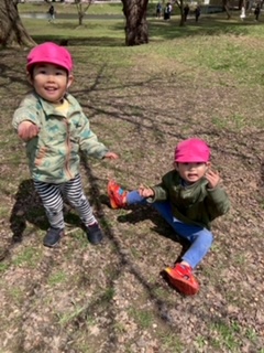今日は花びらが地面に落ちていて、拾って「きれいだね」とみんなで見ました。