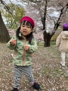 風が少し強く吹くと、桜吹雪を見ることが出来ました。桜がたくさん舞い散ると、嬉しそうな子どもたちの笑顔が見れました。