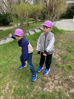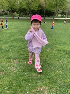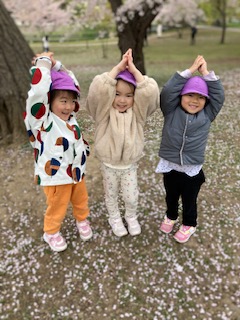 まだ桜は咲いていたのですが、花びらがたくさん落ちていました。みんな「かわいいね」「きれいだね」と言いながら拾って保育者に見せてくれました。