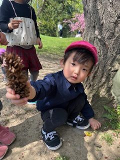お散歩中、「見てみてたんぽぽがいっぱい!」「本当だ!他には何色のお花があるかな。」と会話を弾ませながら笑顔を見せていた子どもたちです。
