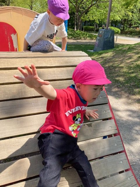 ローラー滑り台などの遊具で思いっきり体を動かし、鬼ごっこをする子供たちもたくさんいました。