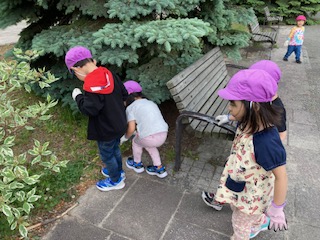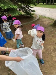 今日はうめ組とさくら組で道路清掃をしました。中島公園の広場のごみ拾いをしてきました。