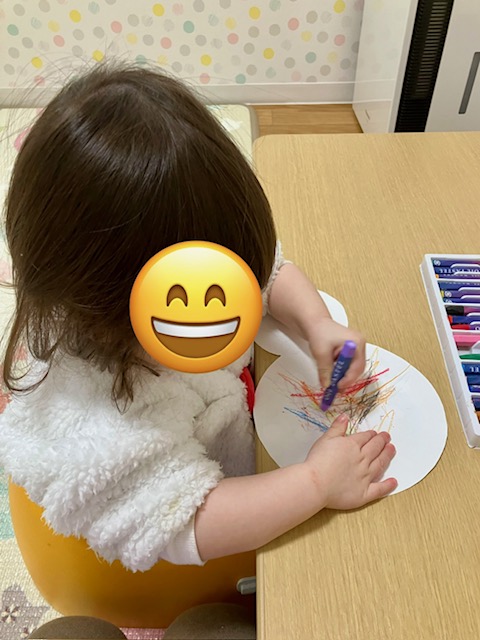1本を手にとっては線を描き、きちんと箱に戻してから次のクレヨンを手に取り、色を重ねていきます。