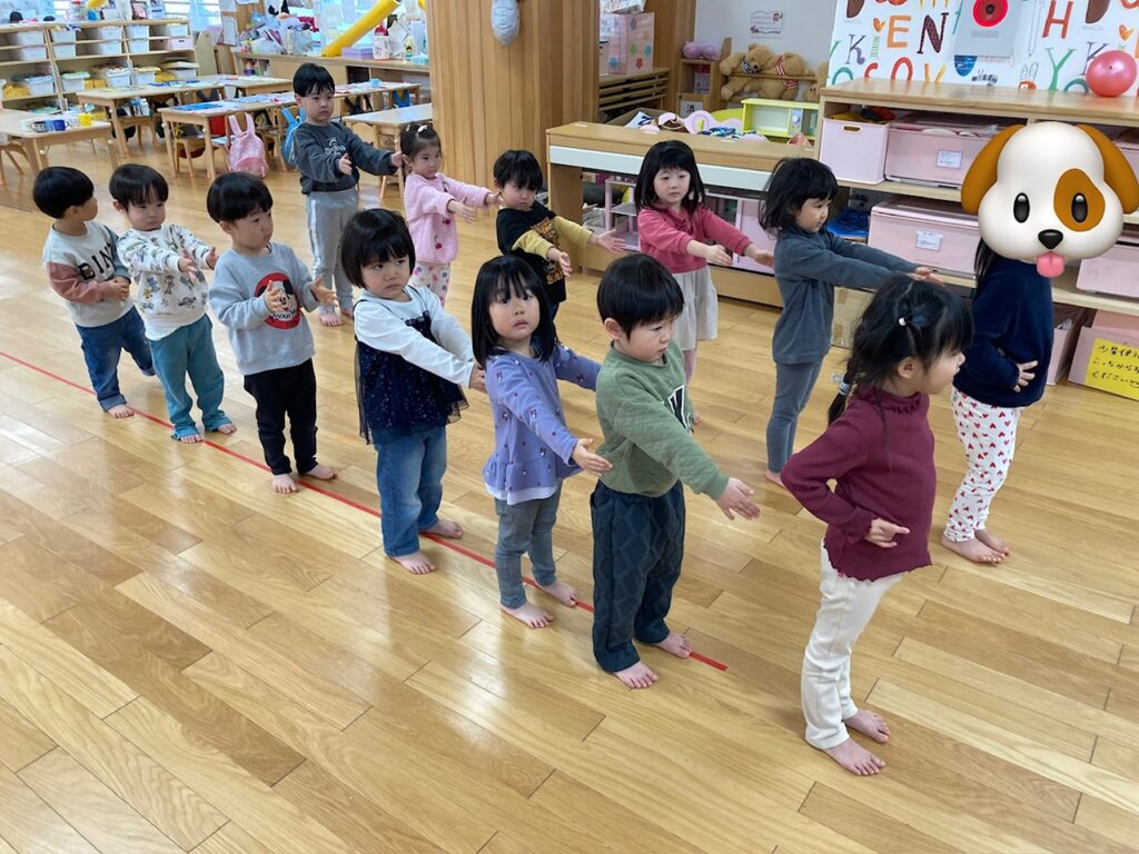 まずは準備体操で身体を温め、お楽しみのバランスタイムで大笑いをしていたうめ組さん。みんな笑顔が素敵です。