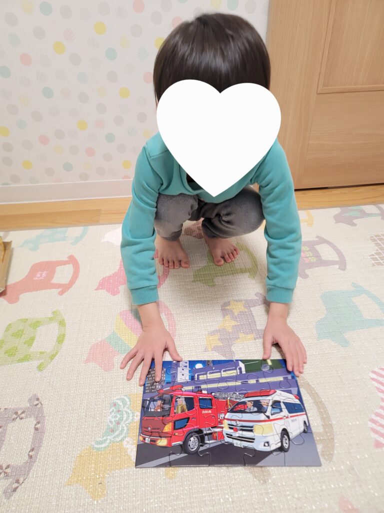 スタートは得意のパズルを選びました。12ピース、16ピース、最後は20ピースに挑戦しましたが「得意だから簡単だよ!」と次々に完成させ、20ピースのパズルも1人であっという間に完成させていました。