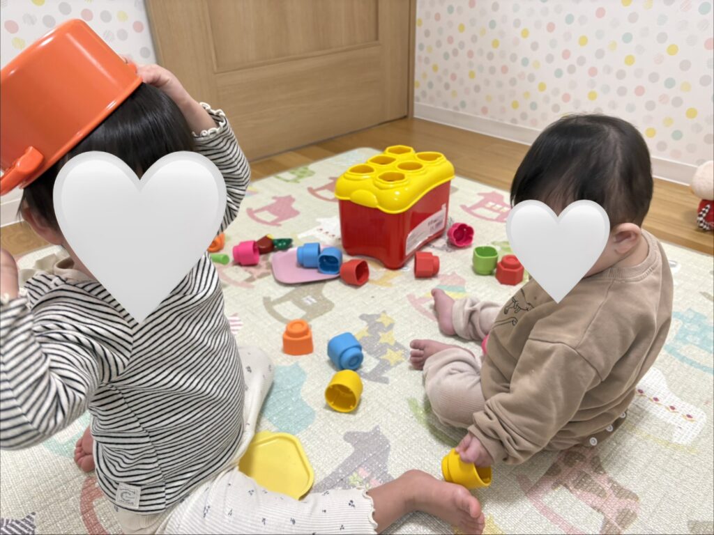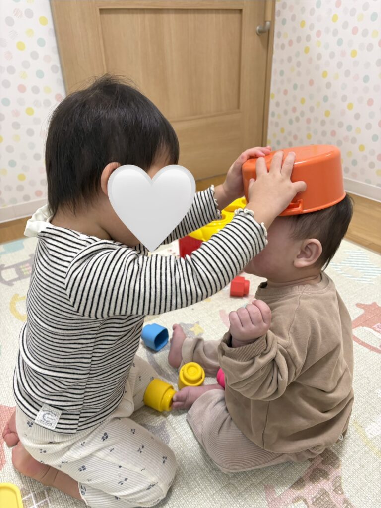 鍋を帽子に見立てて、かぶったりかぶせたりしながら仲良く遊んでいましたよ。