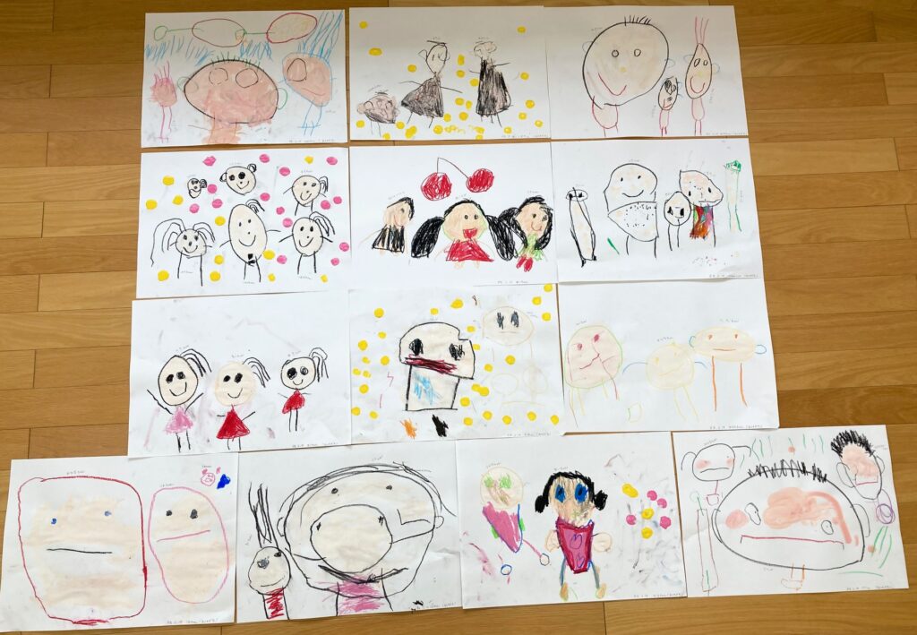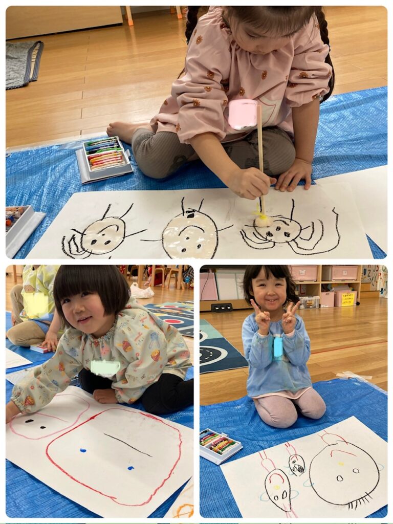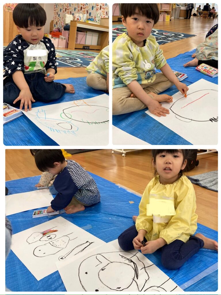 「誰を描きたい?」「お友だちは誰かな?」と質問するとたくさん名前が上がっていて、仲の良さが分かった瞬間でした。
