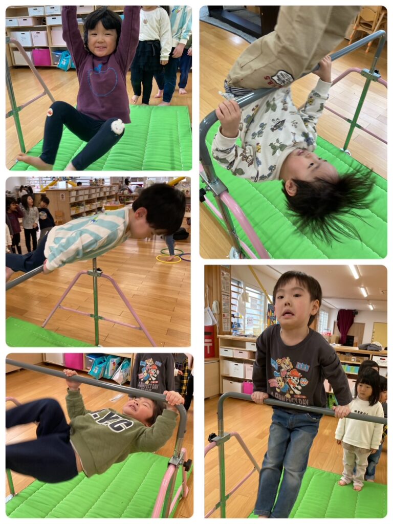 前回り又はぶら下がりの練習をしました。