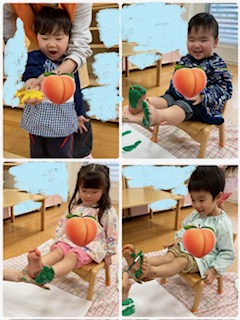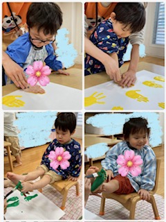 手形と足型を取りました。久しぶりの足型と手形にとても喜ぶ姿がみられました。