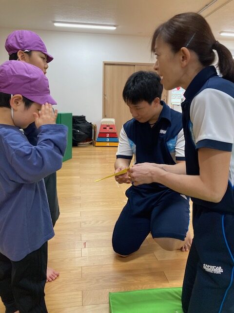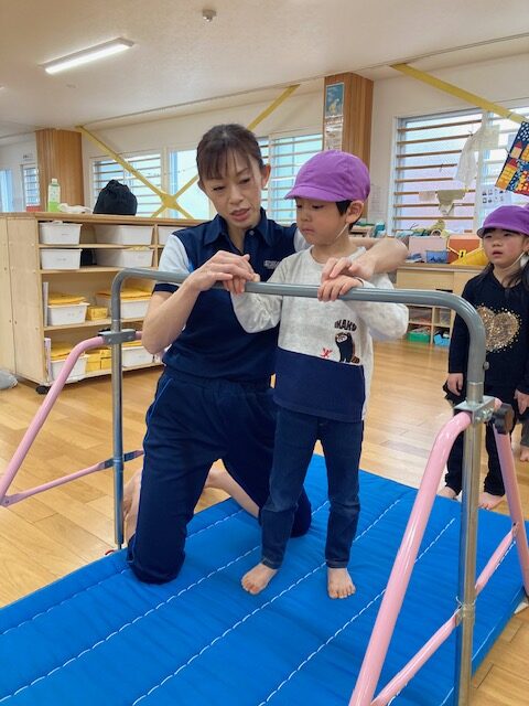 鉄棒では逆上がりや前回りを、講師のサポートを受けながら挑戦しました。
