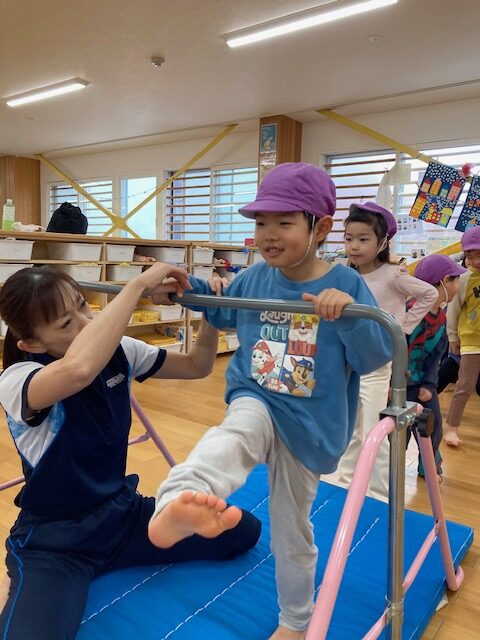 途中、ケンケン(片足跳び)、ハードル走などの運動も取り入れて、ぐるりと回遊できるような運動プログラムになっていました。