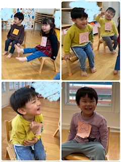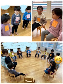 ジャンケンをしたり譲り合ったりと上手にやり取りをしていました。1番多かったのは『フルーツバスケット』でした。みんなでたくさん動いて楽しむことができました。