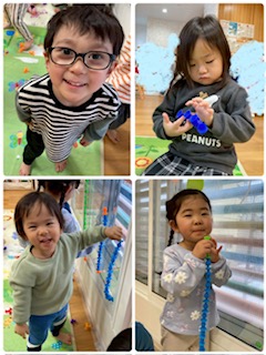 最近は玩具同士を繋げて、ヒモのようにして遊ぶ姿が見られますよ。