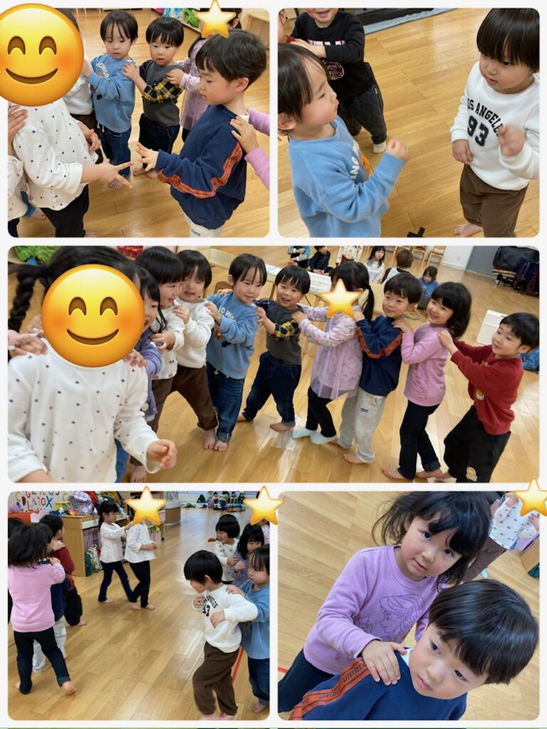 どんどん長くなる列車が面白くて、大笑いしながらも、ルールをしっかり守り、上手に繋がることができて、みんな嬉しそうでした。