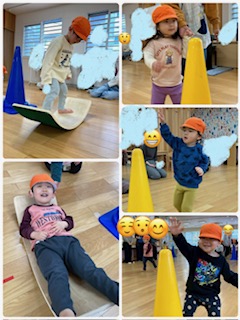 最後はU字型の運動器具でお腹の力で身体を支える力をつけました。バランスよく上に立ち、揺れるとみんな倒れることなく、立って揺れることができていました。とっても上手で驚きました。