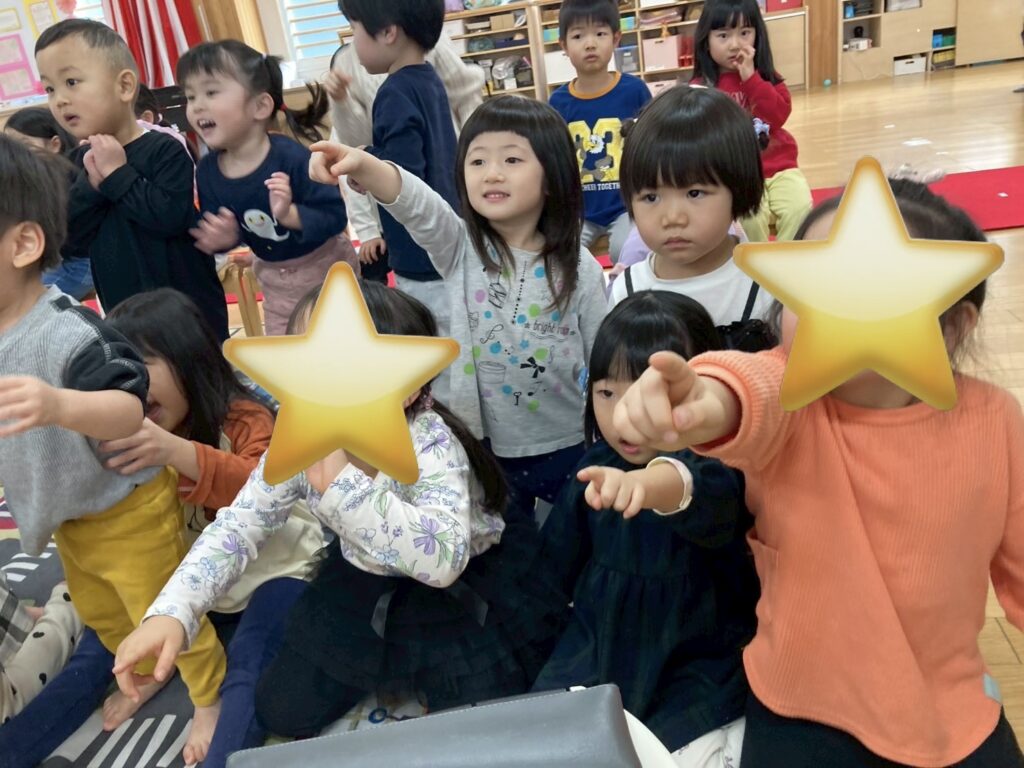「sleep」では眠ったり、「jump」では飛び跳ねたりと、みんなで元気いっぱい英語を学びました。