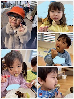 帰園後の給食では久しぶりの散歩でお腹がとても空いたようで、集中して給食をもりもりと食べる姿がみられました。