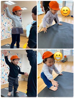 もも組最後のスポーツです。進級に向けて足腰を中心に鍛える運動をしました。
