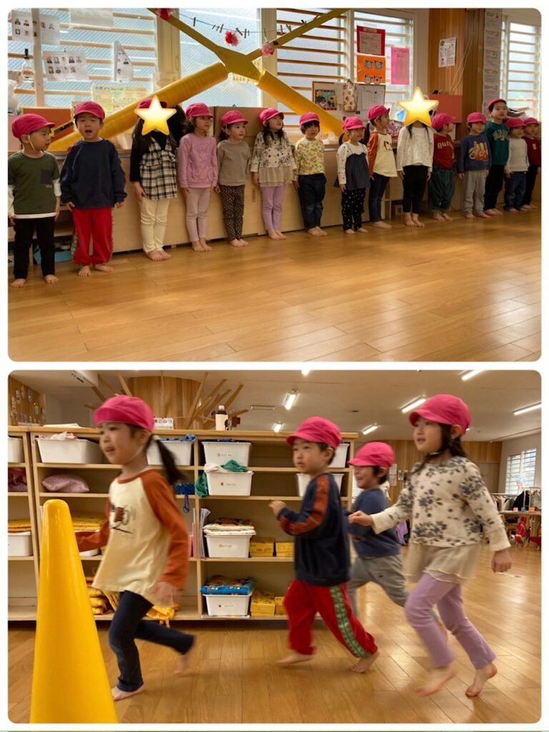 あい先生がお休みだったので、サッカーのトーマス先生が来てくれて、いつものように準備運動のマラソンから始めました。