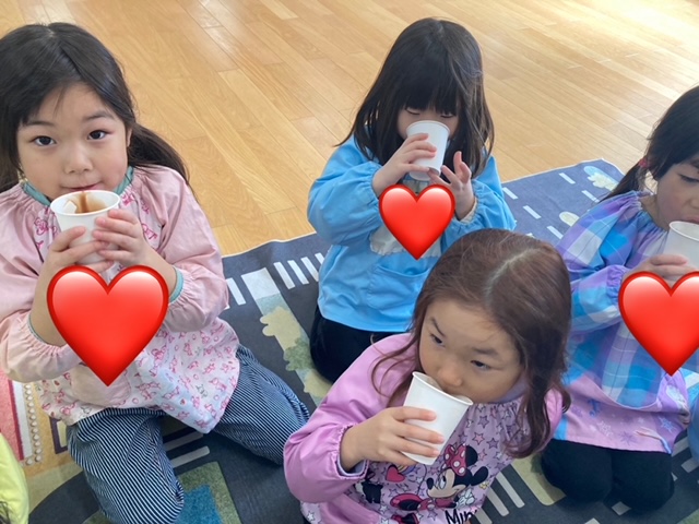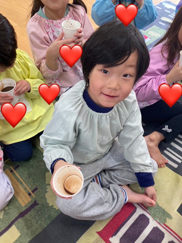 園に戻り、みんなお楽しみの”ココアタイム”疲れた身体に甘いココアは心もあたたかくなりました。