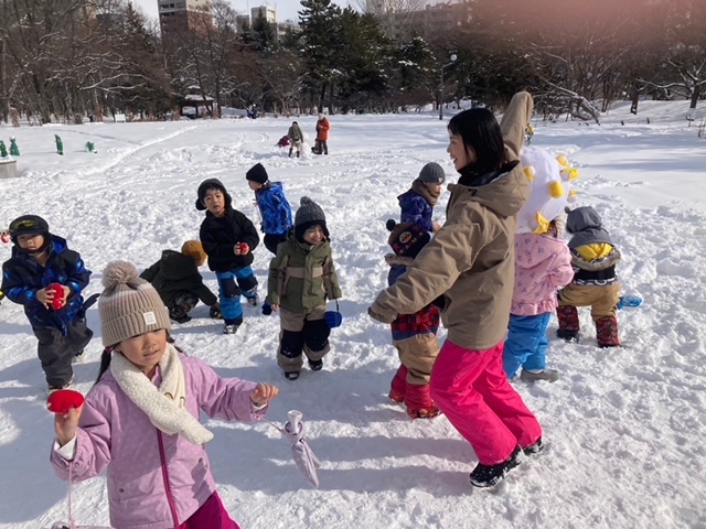 今日は”中島公園〜広場〜”にて「雪中運動会」を行いました。