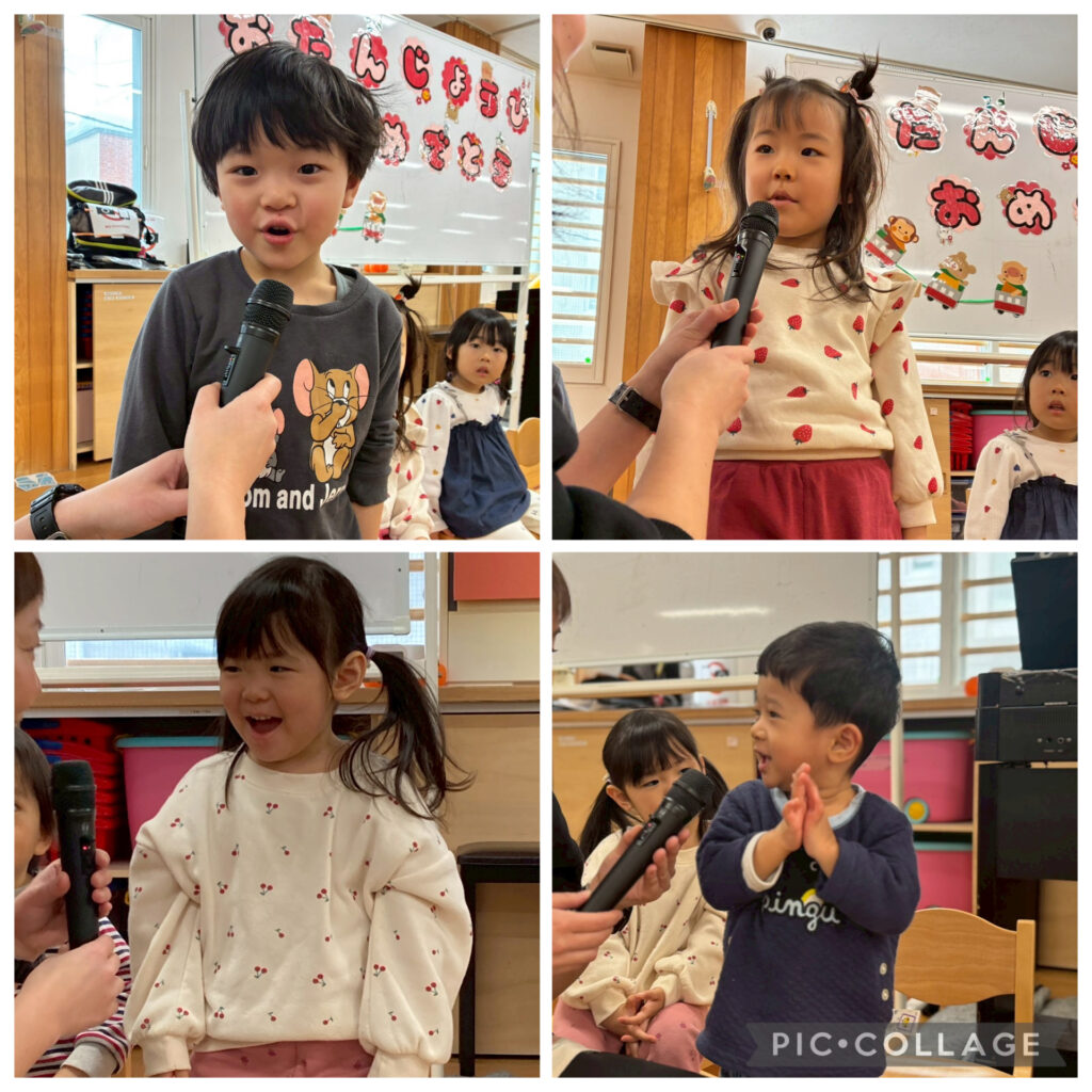 インタビューではみんなに自分の名前と年齢、大きいお友達には将来の夢、小さいお友達には好きな食べ物を聞きました。
