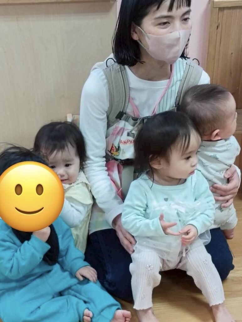 0歳児クラスのお友達は、いつもと違う雰囲気に少し涙も見られましたが、保育者の傍で落ち着いて無事避難することができました。